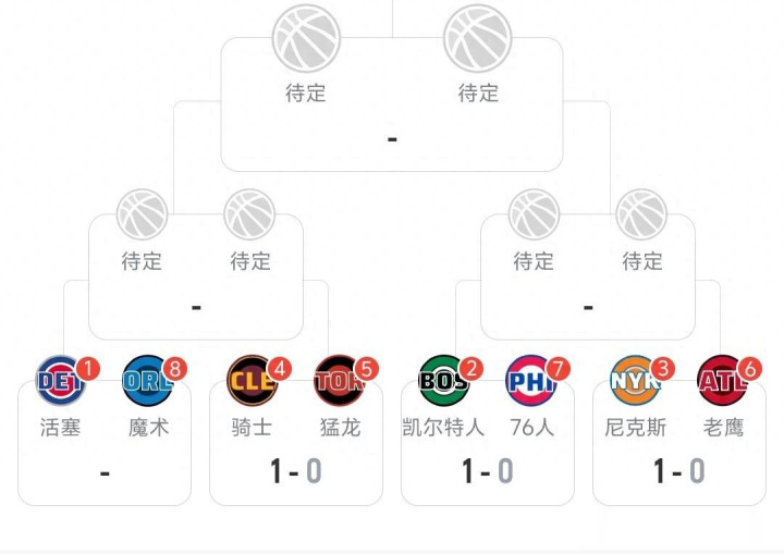 北京时间4月20日,NBA季后赛东部首轮G1全部战罢,底特律活塞主场不敌奥兰多魔术,遭遇开门黑,大比分0-1落后,本场比赛之前,波士顿凯尔特人主场123-91大胜费城76人,另外骑士和尼克斯都取得了开门红,在东部前4的球队中,只有活塞是新晋崛起的,他们的季后赛经验还非常欠缺,骑士在这个半区真的是很有机会冲进东部决赛啊!